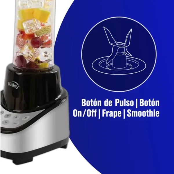 Disfruta tu licuadora Kalley K-MLV700TP Cuenta con 700W de potencia para mayor eficiencia para la preparación de tus alimentos.