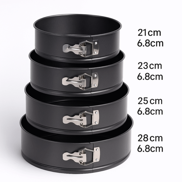 Prepara tortas, cheesecakes y postres con resultados profesionales gracias a este set de 4 moldes desmontables en diferentes tamaños: 21 × 6.8 cm, 23 × 6.8 cm, 25 × 6.8 cm y 28 × 6.8 cm.